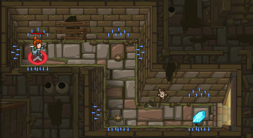 Στην εικόνα 1.2.1 βλέπετε τον πρωταγωνιστή ενός παιχνιδιού ο οποίος πρέπει να φτάσει μέχρι το διαμάντι χωρίς να ακουμπήσει στα καρφιά που προεξέχουν από τους τείχους. Πώς θα καθοδηγήσετε τον πρωταγωνιστή ώστε να φτάσει με επιτυχία τον στόχο του;