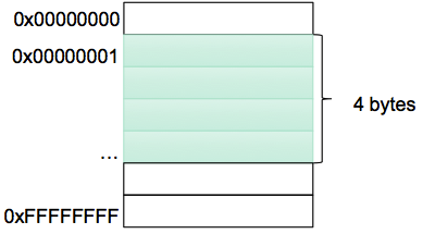 Κάθε byte της κύριας μνήμης ξεχωρίζεται από μια μοναδική διεύθυνση όπως βλέπουμε στην παραπάνω εικόνα. Οι διευθύνσεις αυτές συνήθως αναπαραρίστανται στο δεκαεξαδικό σύστημα αρίθμησης (το οποίο αποτελείται από τα ψηφία 0, 1, 2, …, 9, A, B, C, D, E, F).