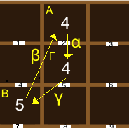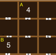 Κατ’ αρχήν θα χρειαστούμε δυο μεταβλητές που θ’ αποθηκεύσουν τις δυο τιμές, ας τις ονομάσουμε Α και Β. Σ’ αυτές θ’ αποθηκεύσουμε δυο τιμές που θα διαβάσουμε από την είσοδο. Έστω ότι ο χρήστης δίνει τις τιμές 4 -> Α και 5 -> Β. Έστω ότι αποθηκεύονται στη μνήμη όπως φαίνεται στην εικόνα 1.3.9 (η μεταβλητή Α δείχνει στη θέση μνήμης 2 και αποθηκεύει την τιμή 4 ενώ η μεταβλητή Β δείχνει στη θέση μνήμης 7 και παίρνει την τιμή 5).