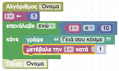 Η εντολή αυτή μπορεί να μετατραπεί και σε ‘επανέλαβε μέχρι’. Στην περίπτωση αυτή θα πρέπει να αλλάξετε τη συνθήκη σε i = 10.