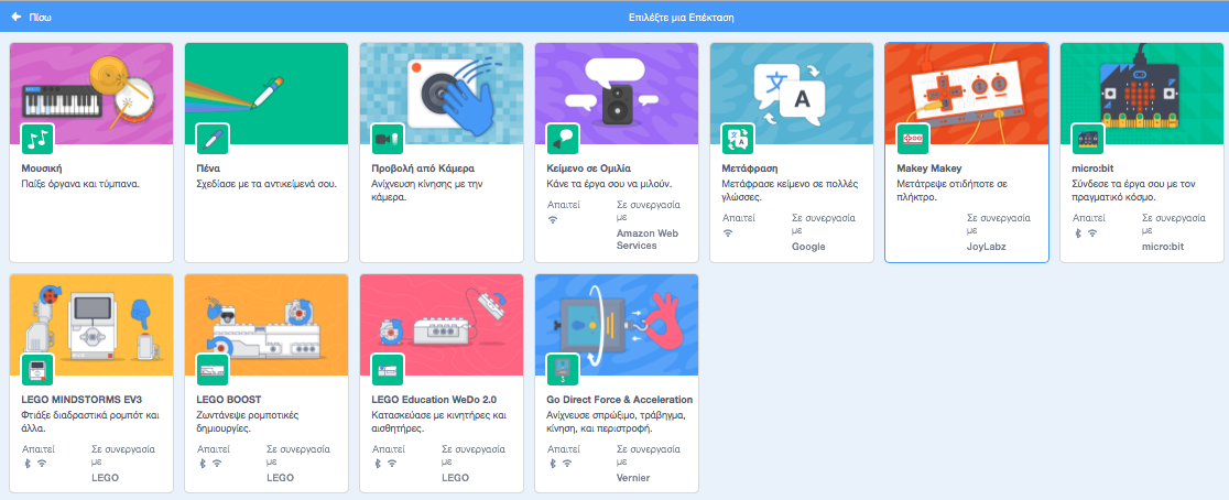 Εικόνα 2.1.2 Επεκτάσεις του Scratch