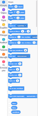 Εικόνα 2.1.4 Εντολές παλέτας Κίνησης