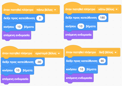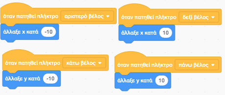 Εικόνα 2.4.1 Κίνηση με τα πλήκτρα βέλη του πληκτρολογίου στο Scratch