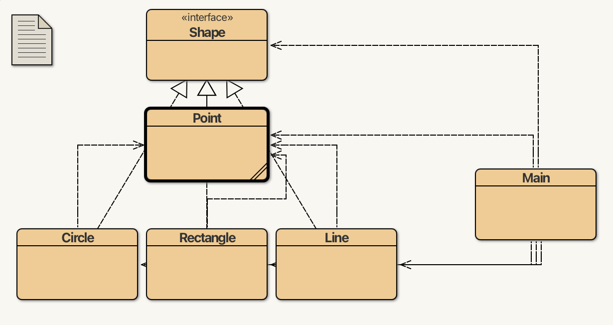 Point(υποκλάση) και ακολούθως στη διεπαφήShape(υπερκλάση).