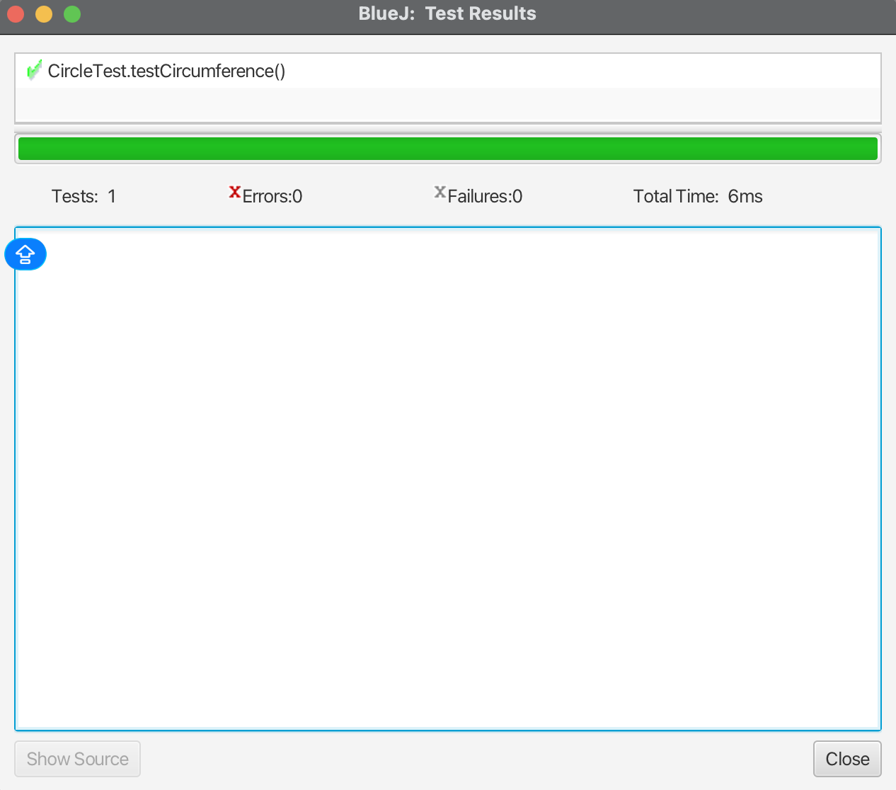 Δώστε τη σωστή τιμή για την περιφέρεια (62.83185307179586) και ξαναεκτελέστε την Test All. Αυτή τη φορά θα πρέπει να δείτε το παράθυρο επιτυχίας:
