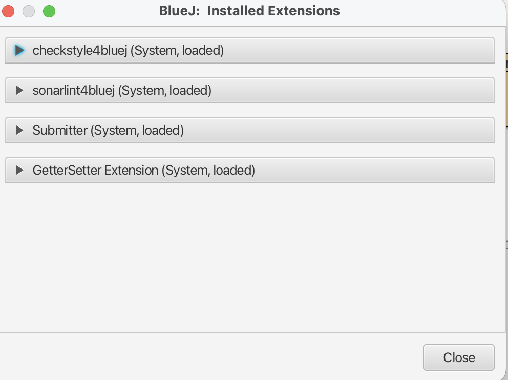 Εικόνα 3.7.4 Εγκατεστημένα πρόσθετα στο BlueJ