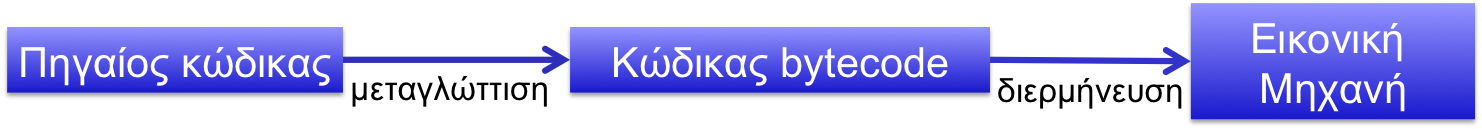 Αντί όμως ο μεταγλωττιστής να παράγει κώδικα σε γλώσσα μηχανής που να τρέχει σε κάποια συγκεκριμένη πλατφόρμα (π.χ. Windows), παράγει τον λεγόμενο κώδικα bytecode. Αυτός είναι ένας ενδιάμεσος κώδικας το οποίο κατανοεί μόνο η Εικονική Μηχανή της Java (Java Virtual Machine). Στη συνέχεια, ανάλογα με την πλατφόρμα στην οποία την έχετε εγκαταστήσει (Windows, Linux, Mac OS κλπ.) αναλαμβάνει να μετατρέψει τα bytecodes σε γλώσσα μηχανής για αυτή την πλατφόρμα. Η Εικονική Μηχανής της τρέχει πάνω σε διάφορες πλατφόρμες ανεξαρτήτως αρχιτεκτονικής, π.χ. Windows, Linux, Mac OS, Solaris. Με αυτό το “κόλπο” επιτρέπει στα προγράμματα γραμμένα στη γλώσσα Java να μεταγλωττίζονται μόνο μια φορά και να μπορούν να εκτελούνται σε οποιαδήποτε πλατφόρμα χωρίς την ανάγκη επαναμεταλώττισης. Με άλλα λόγια μας επιτρέπει να γράφουμε τον κώδικά μας και να τον μεταγλωττίσουμε μόνο μια φορά και η JVM αναλαμβάνει να τον εκτελέσει σε οποιοδήποτε Λειτουργικό Σύστημα (Write once run everywhere ή αλλιώς φορητότητα (portability)). Αυτός είναι και ένας από τους βασικότερους λόγους που έγινε τόσο διαδεδομένη.