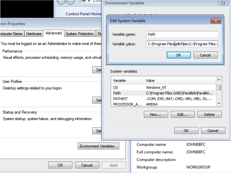 %JAVA_HOME%\bin;μπροστά από οποιαδήποτε άλλη τιμή της μεταβλητής αυτής - Πατήστε ΟΚ σε όλα τ’ ανοικτά παράθυρα